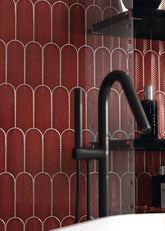 Alma Scale Garnet 8X21.5 draws inspiration from natural forms, mimicking the organic elegance of leaves and feathers. Its distinctive elongated shape—tapered to a point, rounded at the base—combined with subtle surface reliefs creates visual depth and movement. This innovative wall tile features a lustrous gloss finish that enhances a red shade, one of five carefully curated colour options. Ideal for distinctive architectural projects seeking to make a refined statement, Alma delivers both aesthetic sophistication and practical durability for contemporary interior and exterior applications.