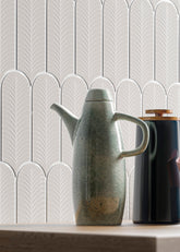 Alma Scale White 8X21.5 draws inspiration from natural forms, mimicking the organic elegance of leaves and feathers. Its distinctive elongated shape—tapered to a point, rounded at the base—combined with subtle surface reliefs creates visual depth and movement. This innovative wall tile features a lustrous gloss finish that enhances a white shade, one of five carefully curated colour options. Ideal for distinctive architectural projects seeking to make a refined statement, Alma delivers both aesthetic sophistication and practical durability for contemporary interior and exterior applications.