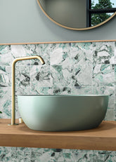 Arctic Aquamarine 15x15 porcelain tile combines aesthetic sophistication with practical durability. The striking white veining pattern replicates natural ice formations, delivering visual depth and a tranquil atmosphere to any interior space. This 15x15cm format offers versatility for both wall and floor applications.