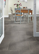 Karndean Corris LM22 captures the authentic character of Welsh slate, inspired by a genuine sample from Braichgoch Slate Mine in Corris Uchaf, North Wales. Its textured surface and cool, ambient light grey tones lend a clean, fresh atmosphere to any room. Perfect for those seeking the natural elegance of slate, this design offers durable beauty grounded in traditional craftsmanship. Please note, the design strip shown (DS10 Chalk in various widths) is not included; contact us to find the right match.