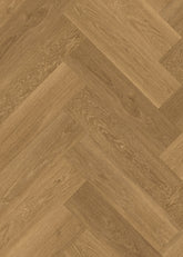 Golden Brushed Oak features a refined European oak design that blends long straight and flowery grain patterns. Its warm honey tones and subtle variations bring a modern edge to classic oak aesthetics. Designed exclusively for herringbone installation, this rigid core product requires an expansion gap, complemented by optional colour-matched or paintable white scotia for a seamless finish.